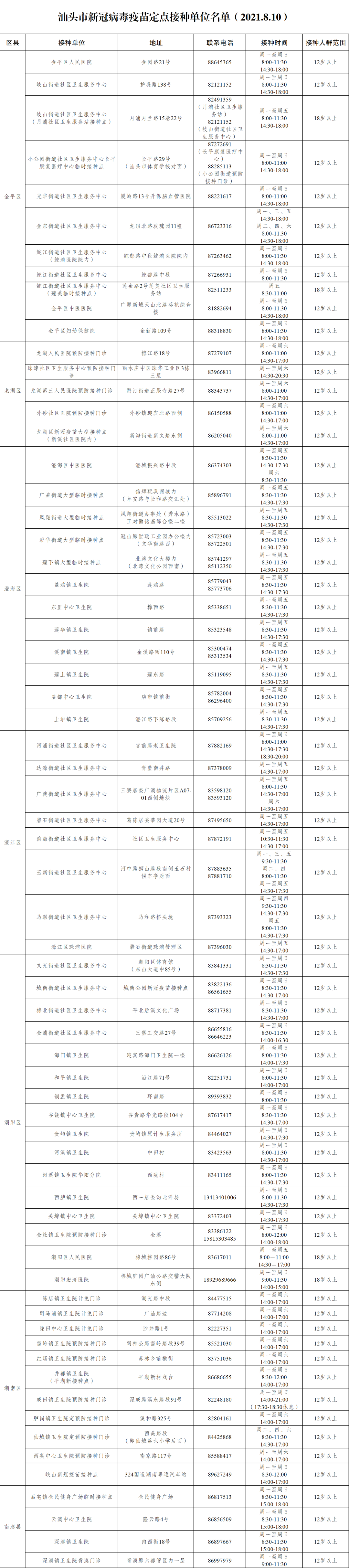 2021年8月10日,市卫生健康局公布全市新冠病毒疫苗定点接种单位名单如下: