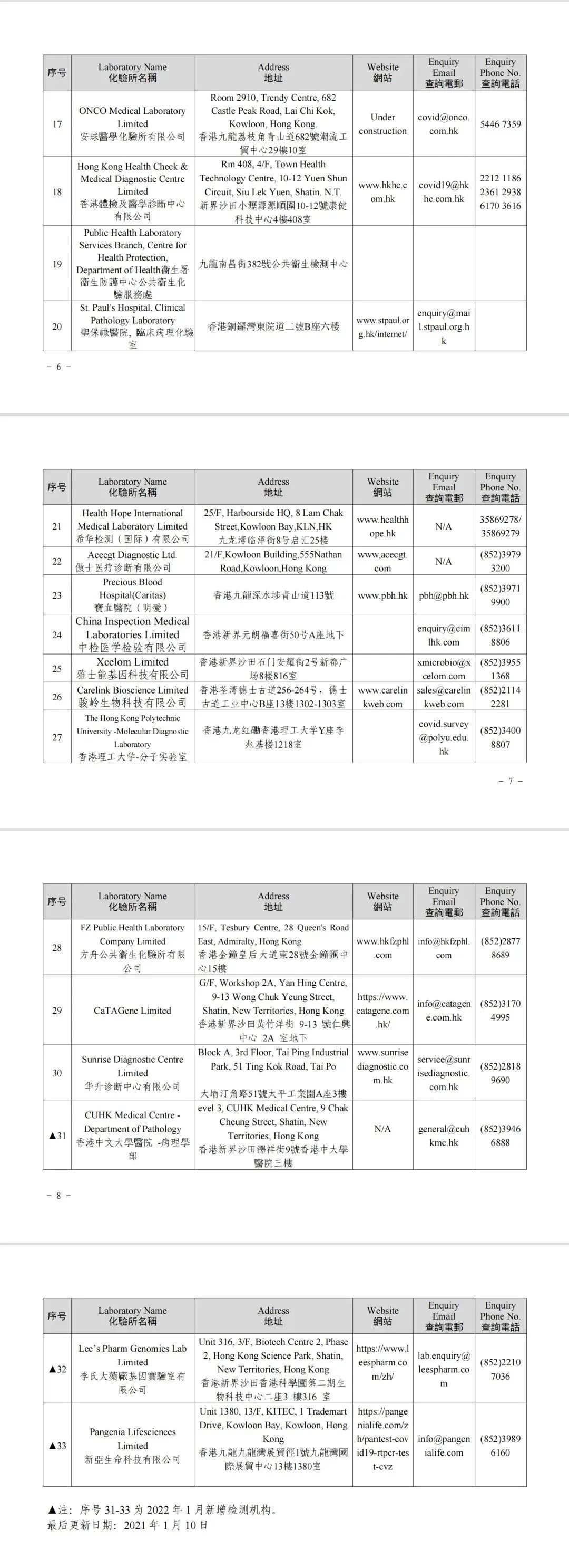 附件:粤港认可的33家香港定点核酸检测机构名单