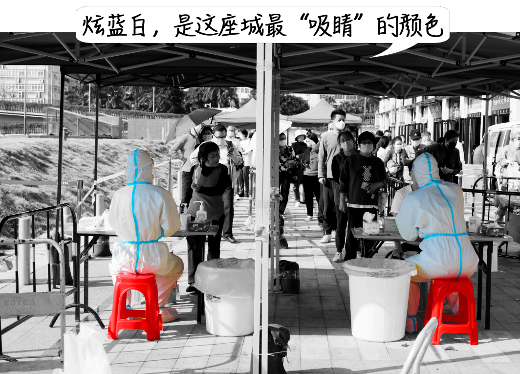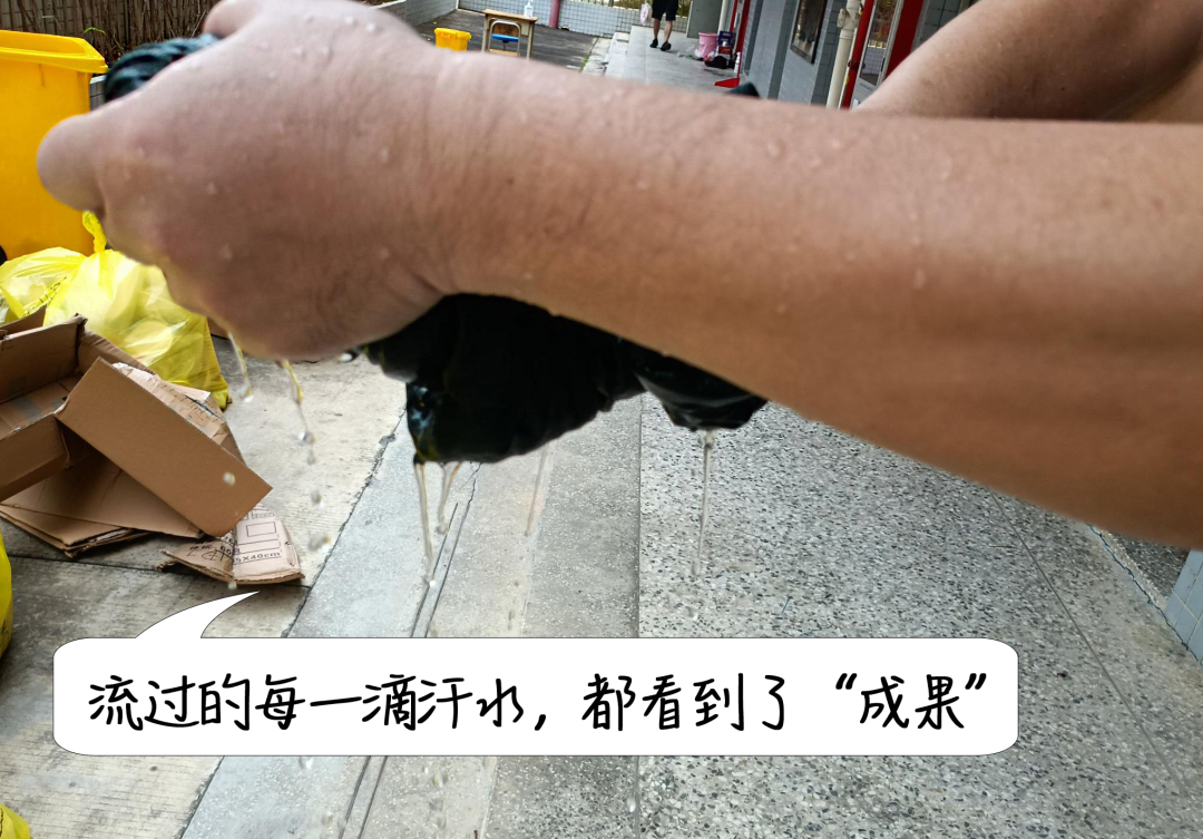 ▲ 采完核酸,防护服里的衣服拧出的汗水