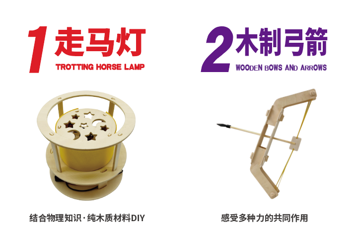 公益科创云课堂礼包第一阶段推出4款主题,每周1款,包括走马灯、木制弓箭、投篮机、发射弩、啄木鸟、地日月仪、疯狂赛车等。