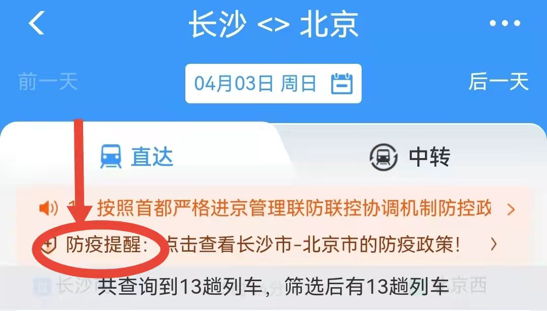 2、可以在铁路12306上查看防疫提醒,具体流程如下:打开铁路12306 APP——首页输入发、到站后查询车次——点击查看上方 “防疫提醒”。如需了解更多可点击右上角“查看详情”,内含疫情防控咨询电话可供查询。