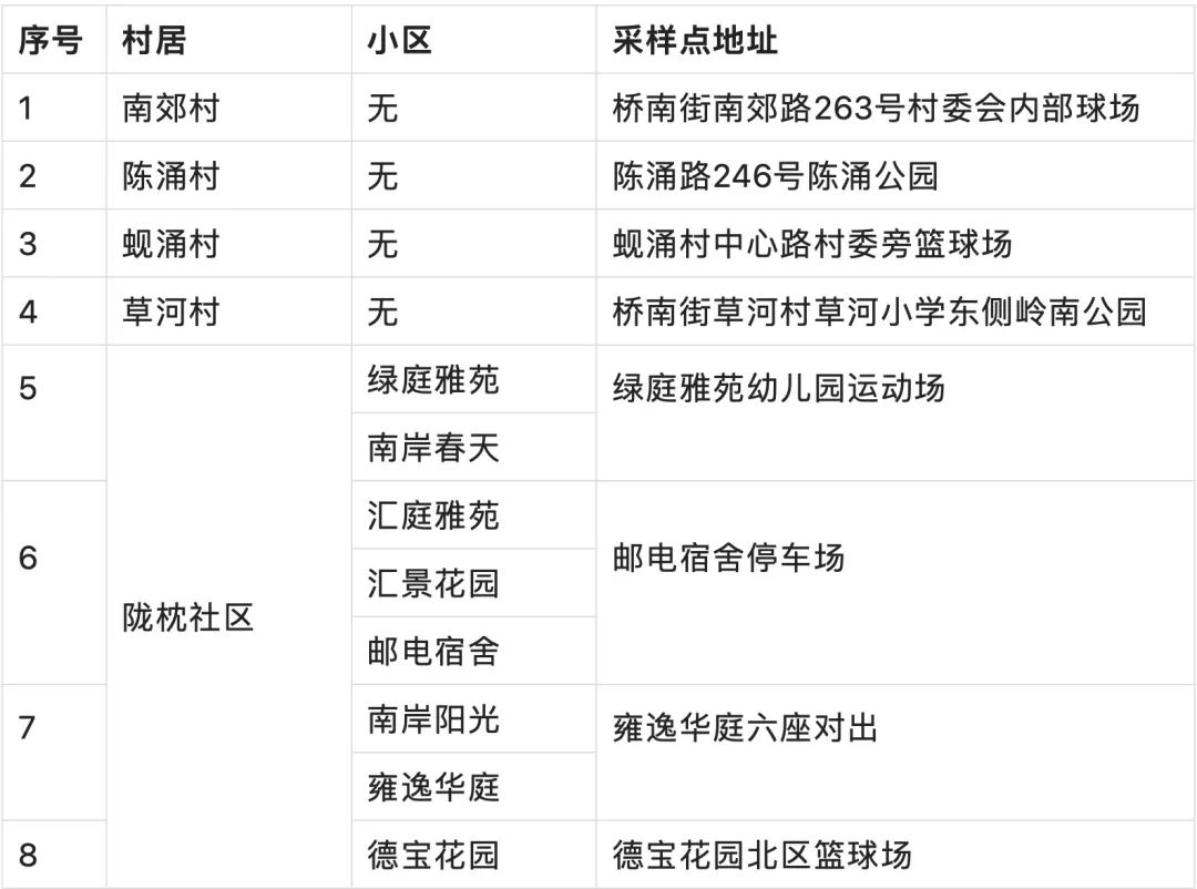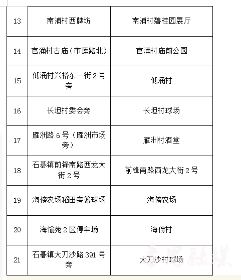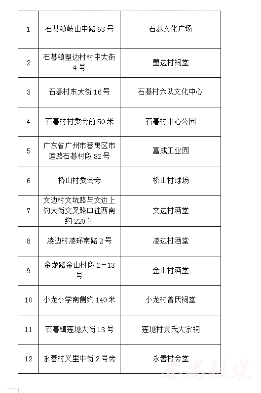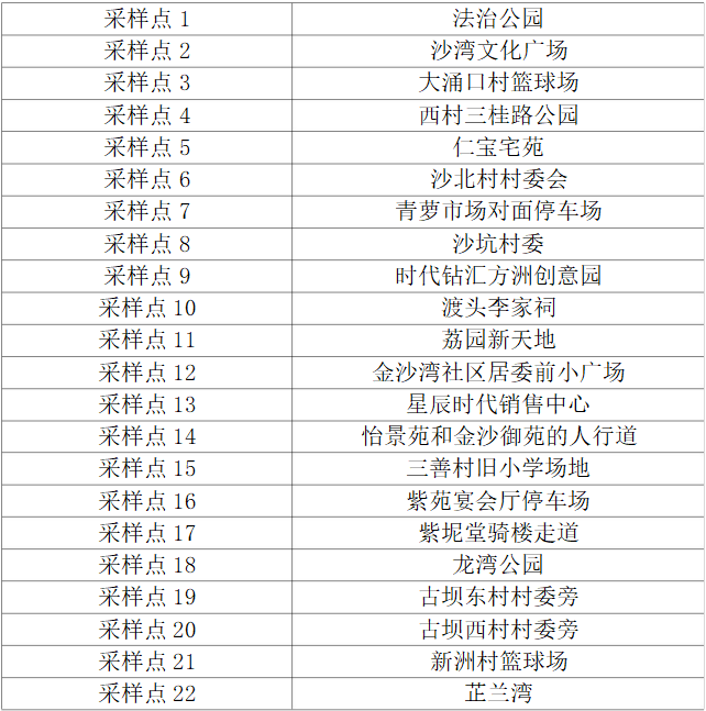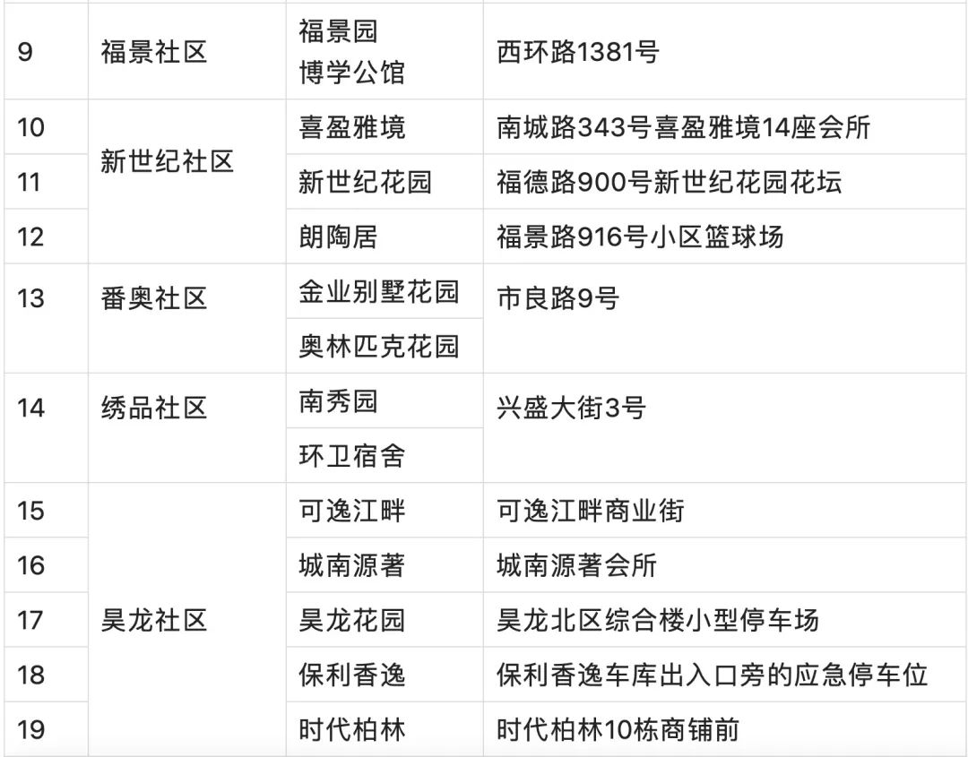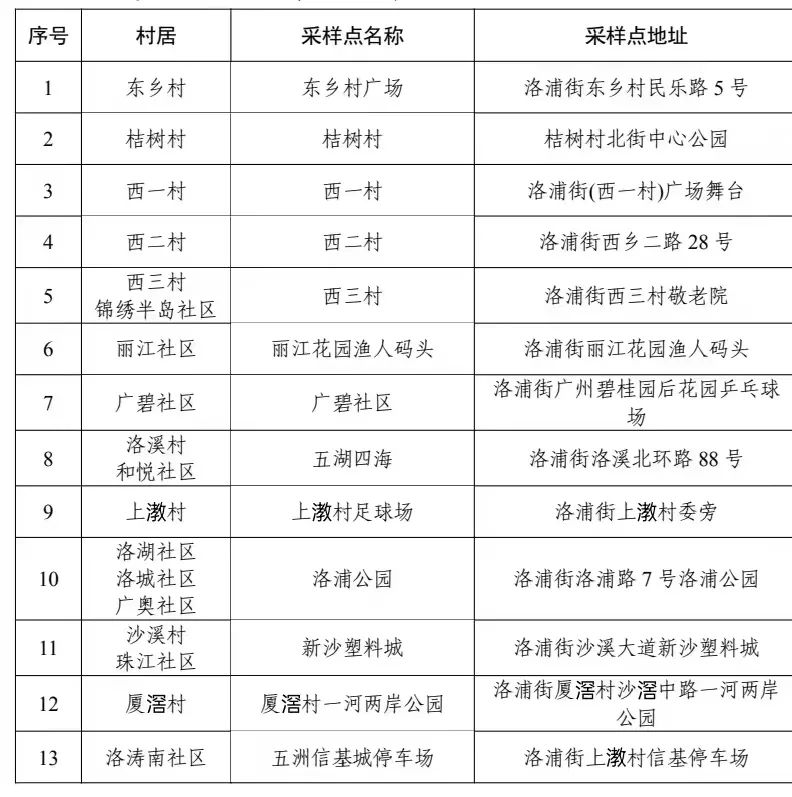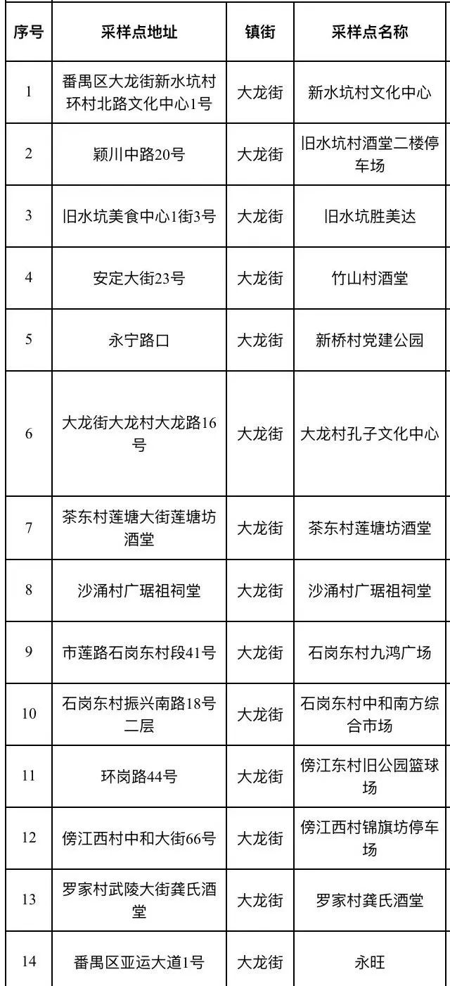 12个镇街大规模核酸检测采样点