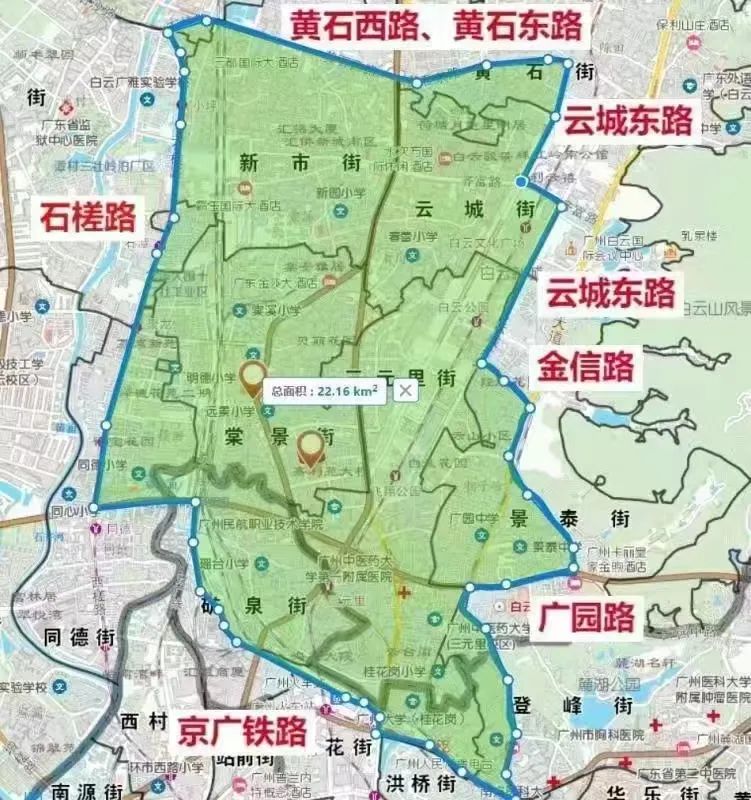 管控区:为以下道路所围区域,黄石西路—黄石东路—云城西路—齐富路—云城东路—金信路—大金钟路—广园中路—下塘西路—童心路—京广铁路—环城高速—西槎路—石槎路。实行“足不出区、错峰取物”管理措施。