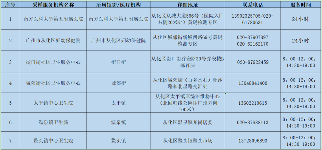 7个“黄码”核酸检测服务点