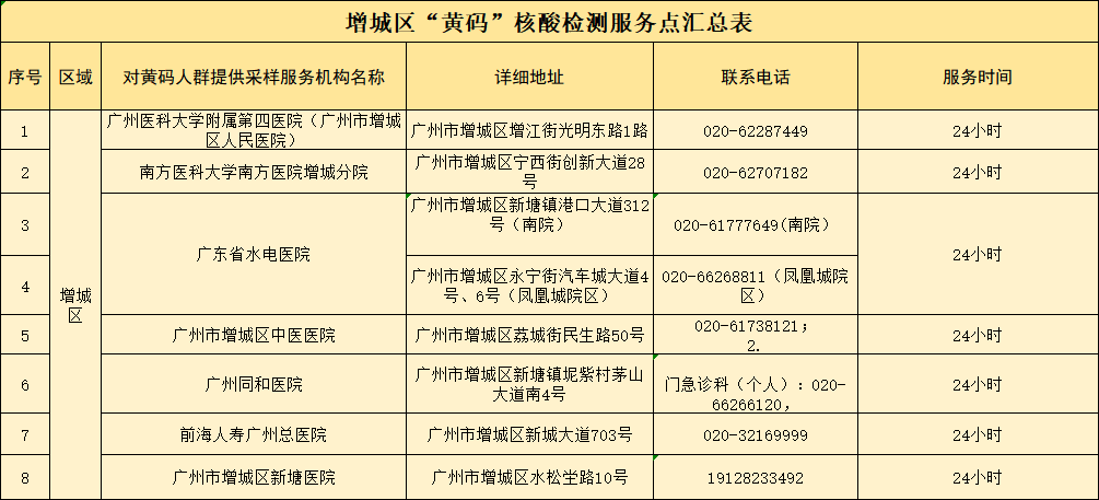 8个“黄码”核酸检测服务点