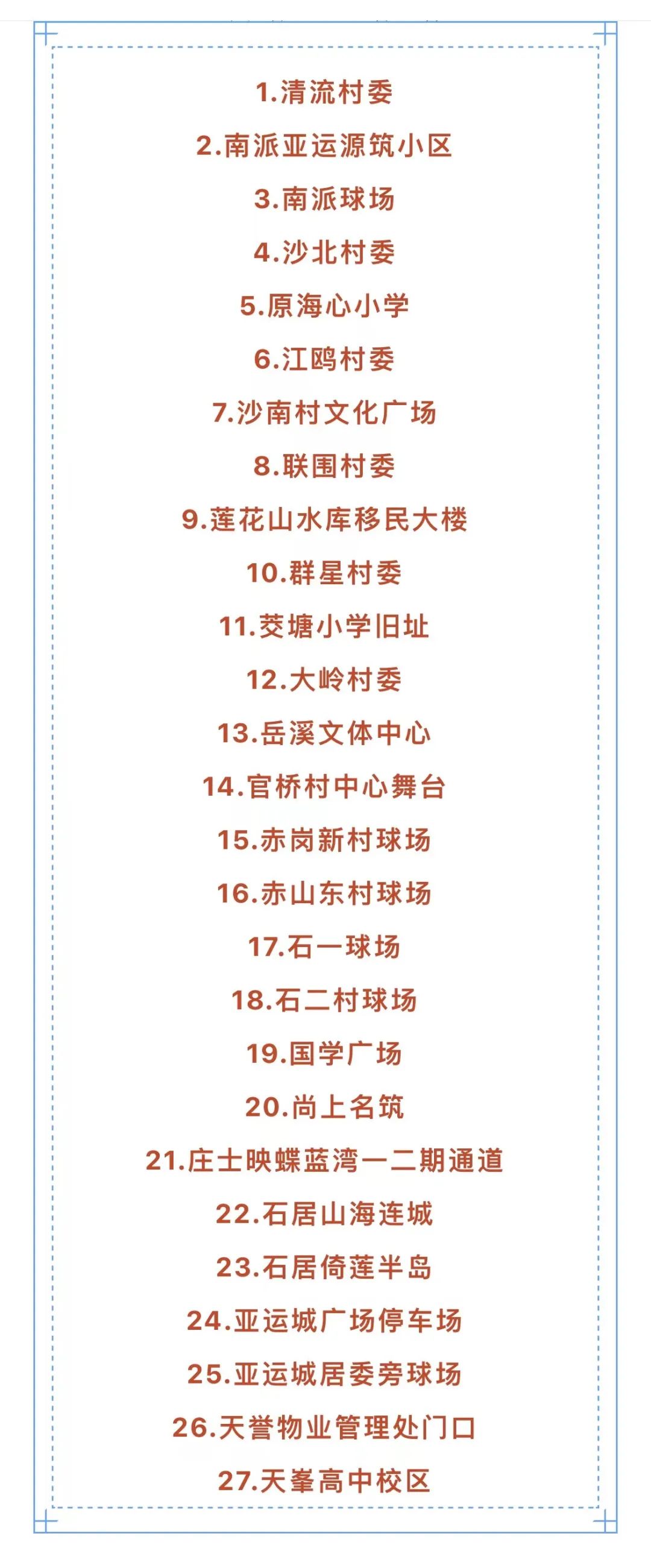 三、检测地点:共27个