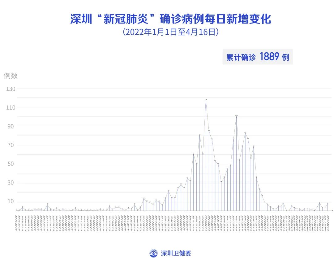 4月16日0-24时,深圳新增本土6例新冠肺炎确诊病例和2例新冠病毒无症状感染者。