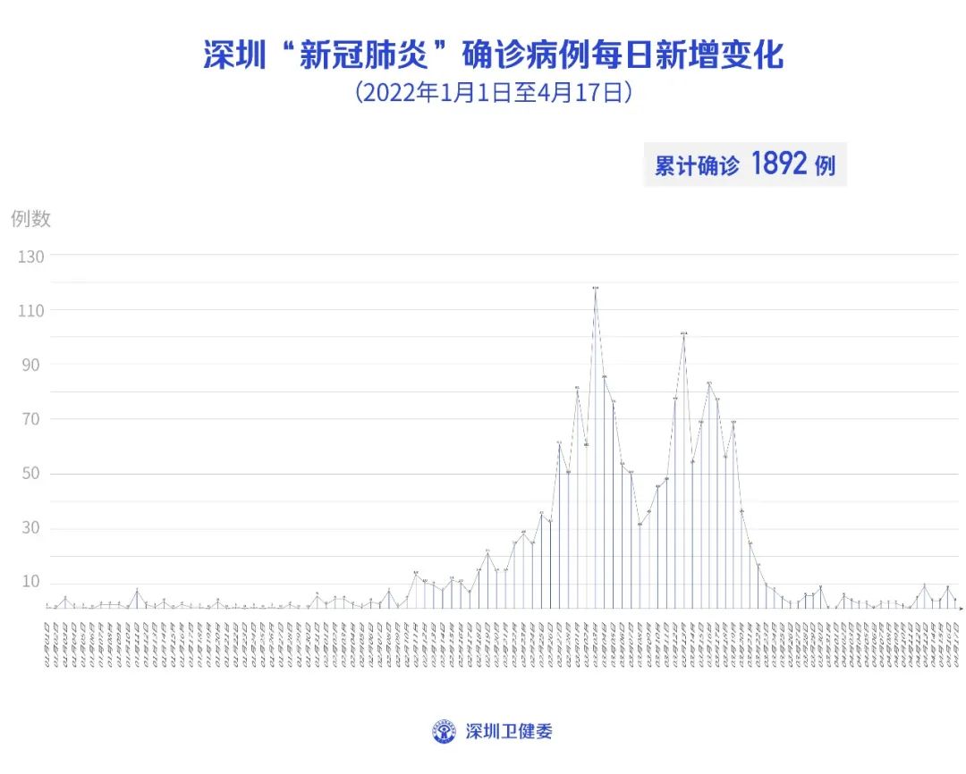 4月17日0-24时,深圳新增本土2例新冠肺炎确诊病例和2例新冠病毒无症状感染者。