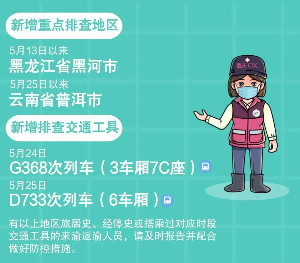 有重点时段和地区旅居史、经停史,搭乘过对应时段交通工具的来渝返渝人员,在做好个人防护的前提下,第一时间向社区(村)、单位、宾馆酒店民宿等报告,按要求配合做好核酸检测、隔离观察、健康监测等防控措施。