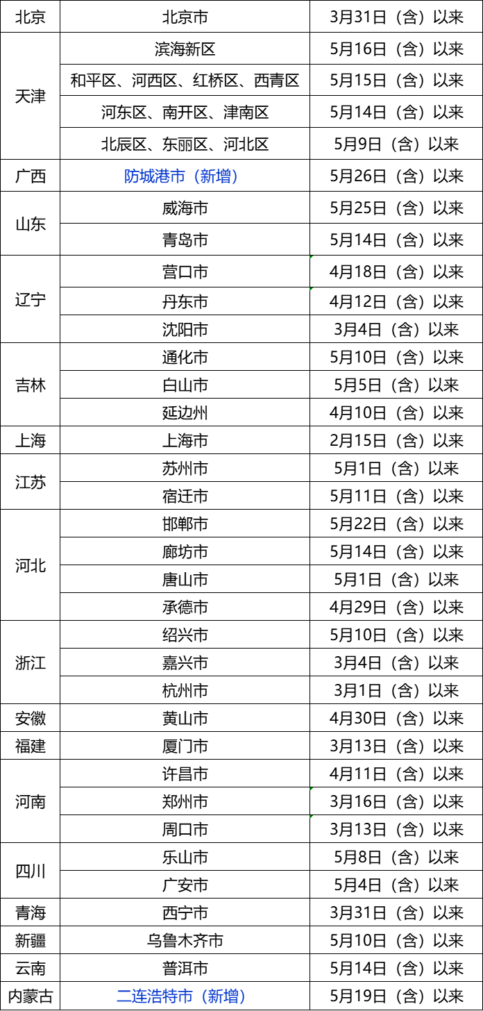 • 北京市(除房山区、朝阳区的南磨房乡和十八里店乡、海淀区的北太平庄街道、通州区的台湖镇、丰台区的五里店街道)