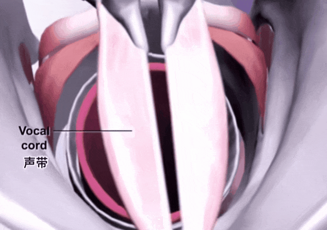 不发音的时候,声带通常是自然放松打开的;一旦发音,两侧声带会向中间靠拢,声门变窄甚至几乎关闭,从肺部冲出的气流不断冲击声带,引起振动。