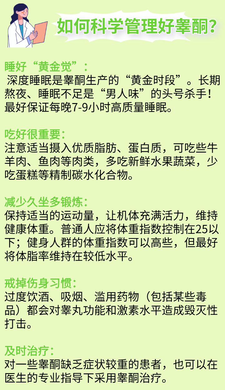 男性想要保持“男人味”,要尽早改正坏习惯,坚持健康的生活方式,对维持和提升睾酮水平有一定帮助。