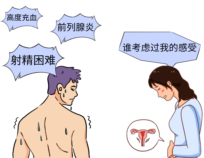 不过,最痛苦的是女生。长时间的摩擦,女生的私处会变干,容易出现外阴红肿、下腹胀痛、盆腔充血的情况。
