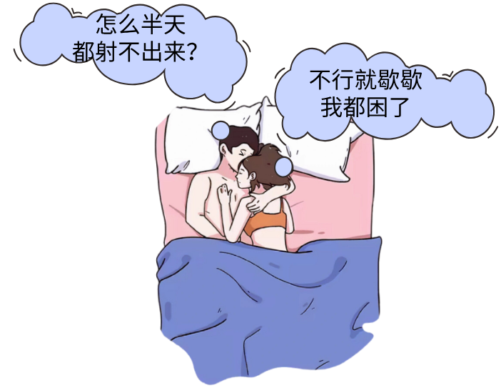 也就是说,患者有正常的性欲和勃起能力,但是由于射精困难而造成性爱时间延长,以致难以达到高潮,甚至根本没有性高潮。患者得需要长时间的刺激,才可能射出,过程非常困难。