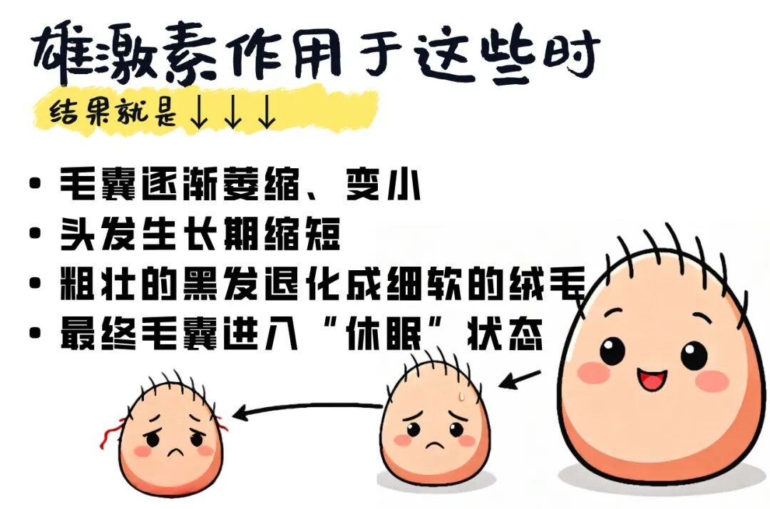 这个过程就像土地逐渐 “荒漠化” ,形成了我们常说的雄激素性脱发。