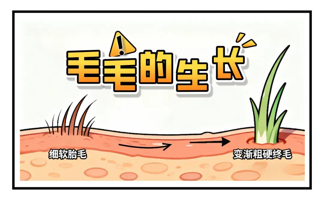 有趣的是,无论男女,每个人在胎儿阶段都曾全身覆盖着一层细软的“胎毛”,随着发育,在激素的影响下,一些部位的毛发逐渐转变成更粗硬的终毛。