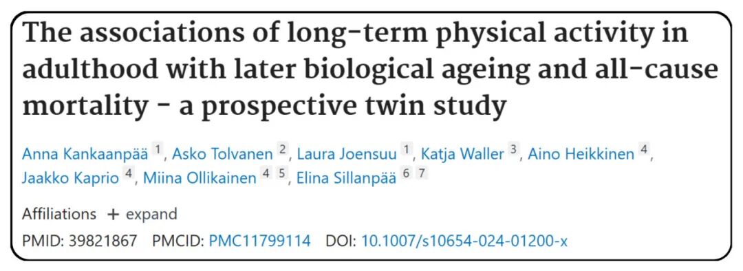 《欧洲流行病学杂志》上发表的一项针对2万多对双胞胎长达45年的追踪研究指出,不运动或运动太多,都会老得快,适度运动才能延缓衰老,并降低死亡风险。
