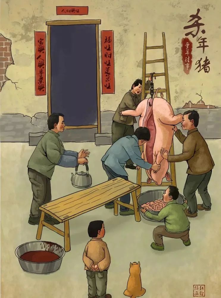 爷爷定了初九解年猪,请了邻居帮手,约了杀猪匠老泰叔。