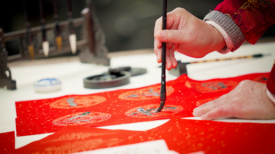 父亲却固执地要锻炼我,尽管我的毛笔字十分稚嫩。他和我一起裁红纸、量尺寸、折字位,然后要我选取万年历里的春联,用毛笔写到红纸上。