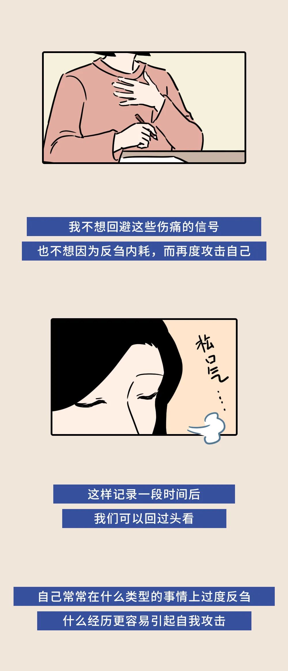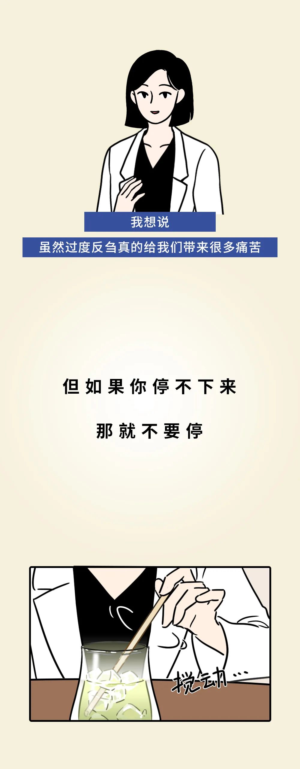 最后的话 两年前,我们写过一篇漫画,给大家分享了什么是 过度反刍 。 很多读者都留言跟我说,他们常常被这种过度反刍所折磨,费了很多力气,还是压抑不了那些纠结和焦虑的情绪