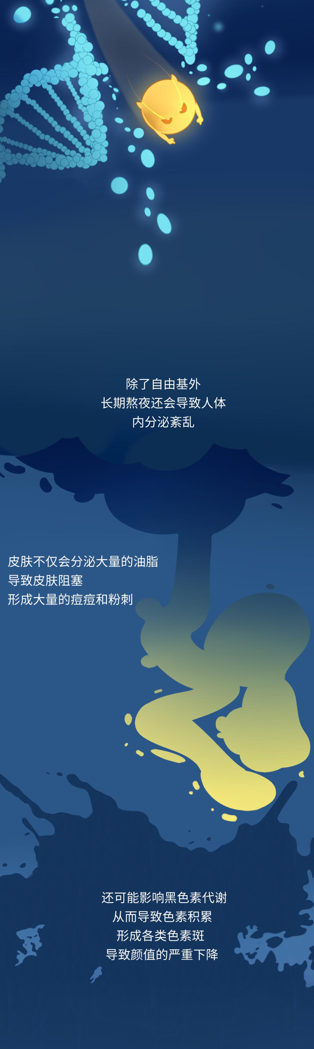 例如,长期熬夜会影响体内黑色素的代谢,导致黄褐斑等色素斑的形成,从而影响你的颜值。