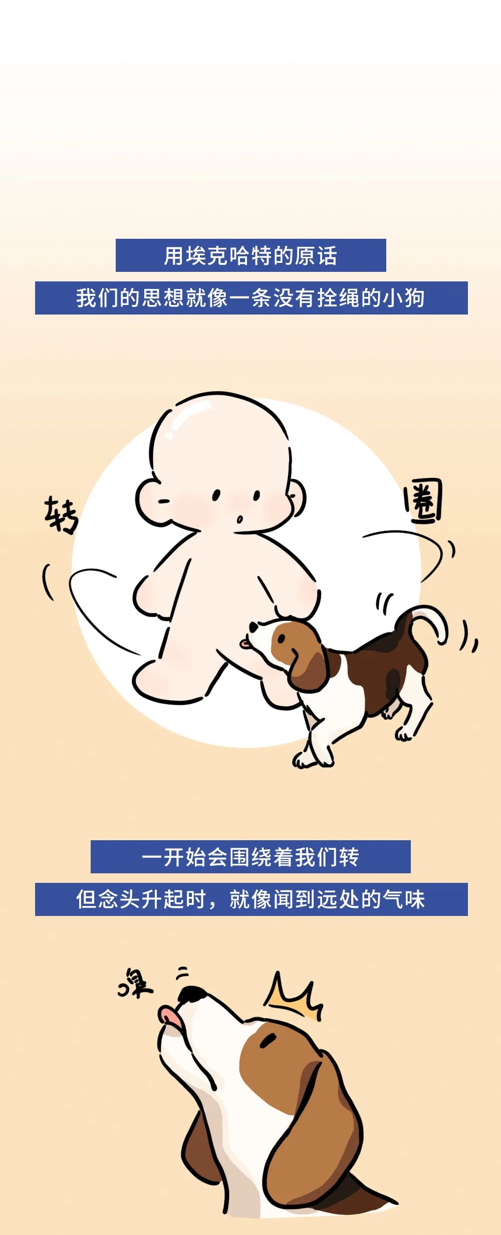 很多时候,我们会沿着「念头」不自觉地“想太多”,是因为思想在一步步地吸引着我们,而且它大多会走向焦虑。