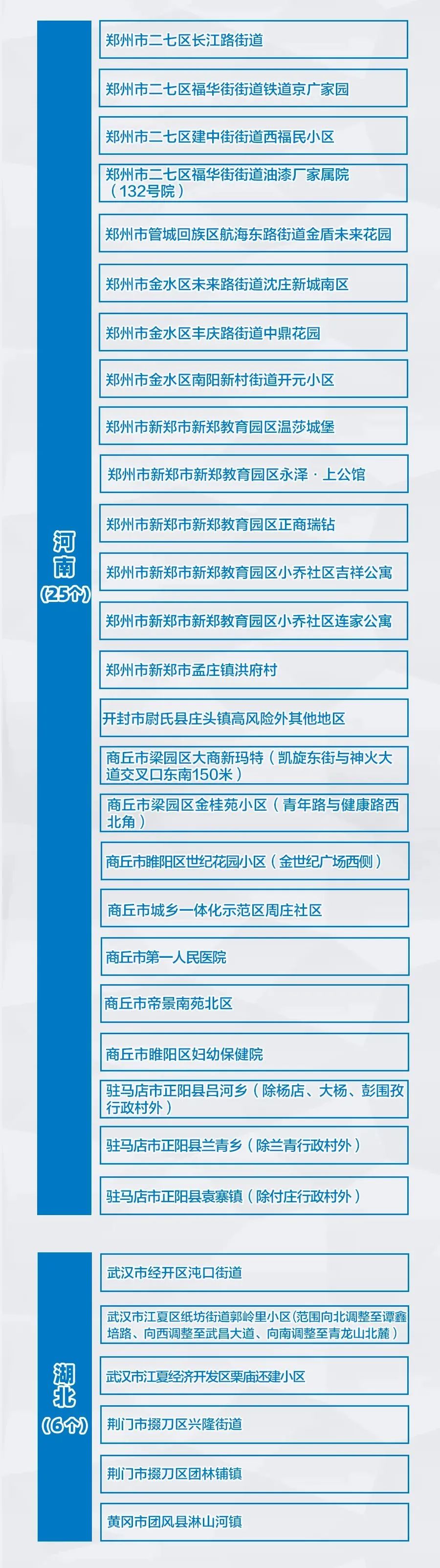 根据国务院联防联控机制有关要求,经上海市新冠肺炎疫情防控工作领导小组办公室研究决定,将浦东新区川沙新镇川环南路1049弄界龙花苑小区、浦东新区盐朝公路798号锦江之星(东海镇店)列为中风险地区,上海市其他区域风险等级不变。
