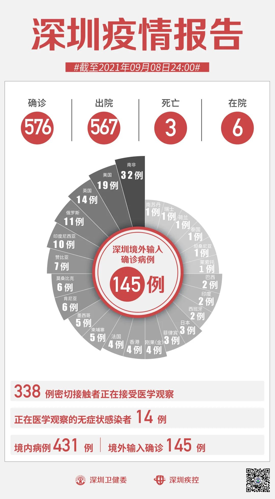9月8日0-24时,深圳无新增确诊病例和无症状感染者。