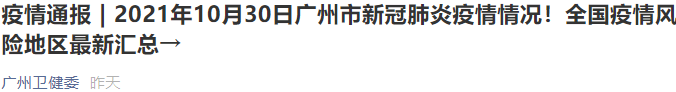 疫情通报 | 2021年10月31日广州市新冠肺炎疫情情况!全国疫情风险地区最新汇总