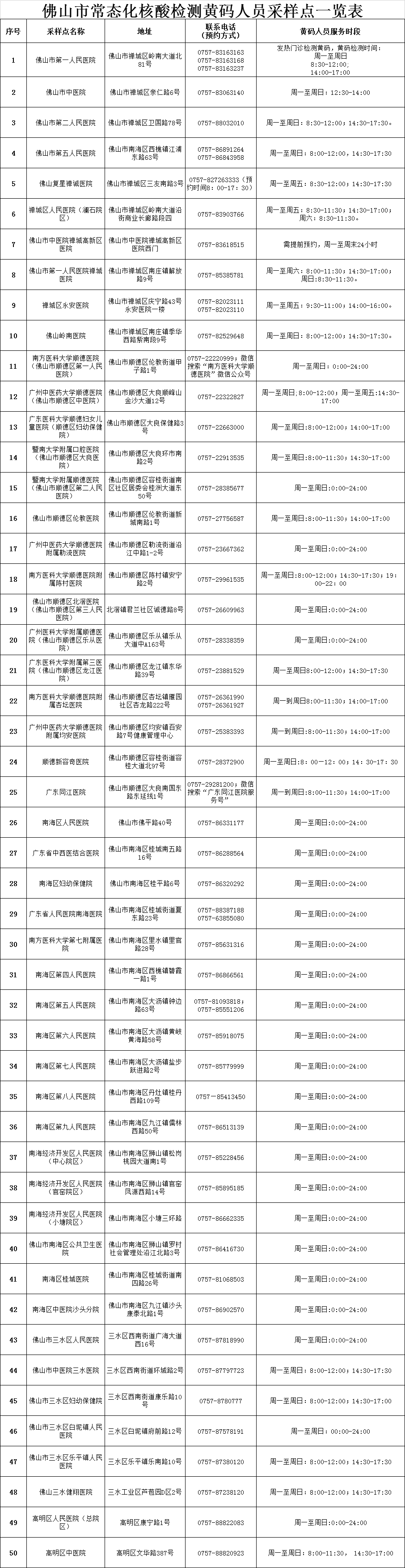 健康君来解答啦!佛山市有这些常态化核酸检测采样点,可以给需要测核酸的市民朋友提供检测服务。