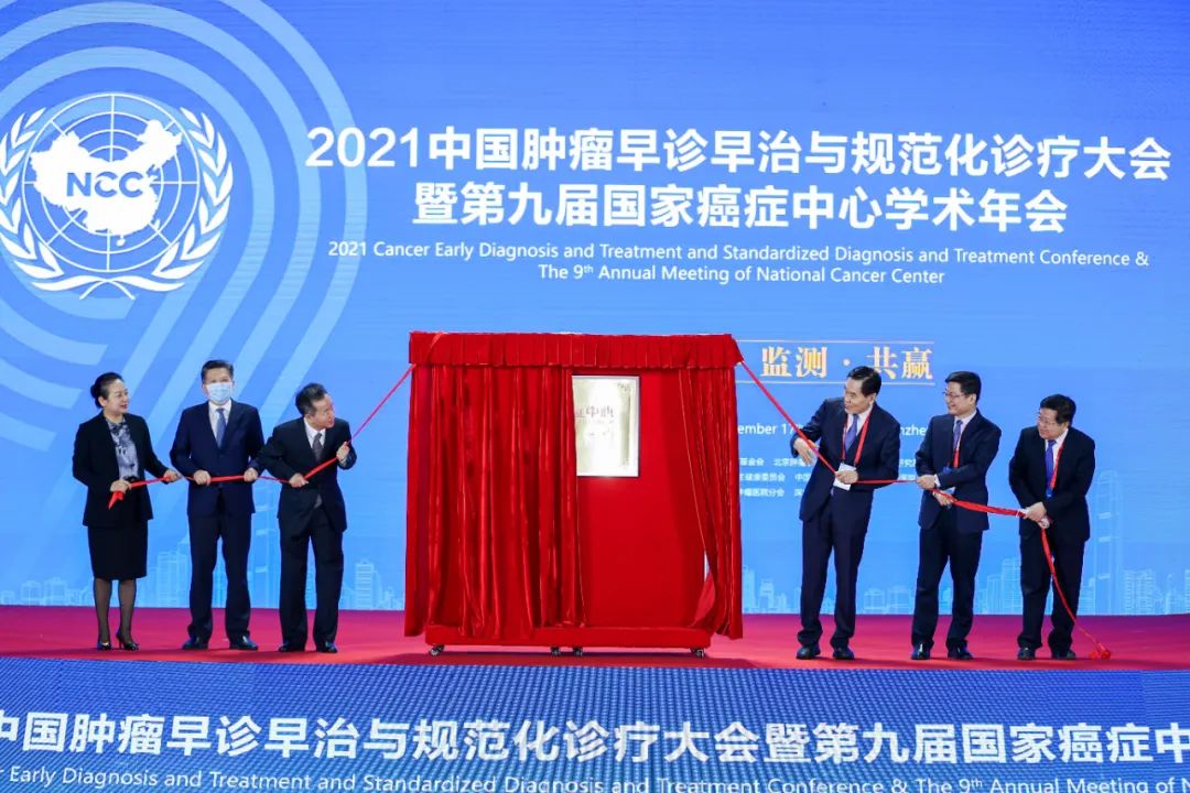 国家癌症中心主任赫捷院士、深圳市副市长陈清等嘉宾共同为国家癌症中心南方分中心揭牌