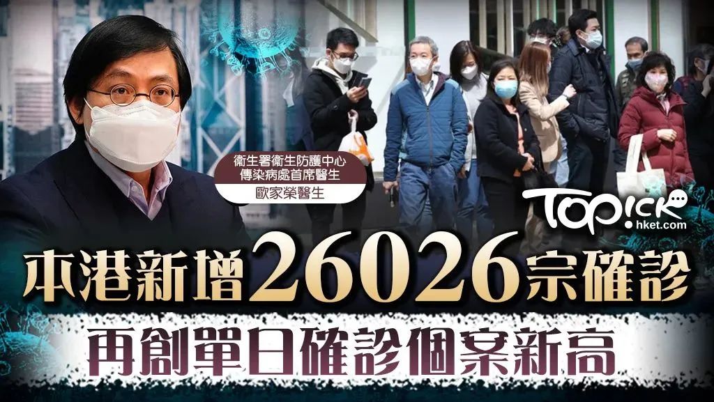 香港特区政府卫生署卫生防护中心27日公布,截至当日零时,香港新增26026例新冠肺炎确诊病例,再创新高。