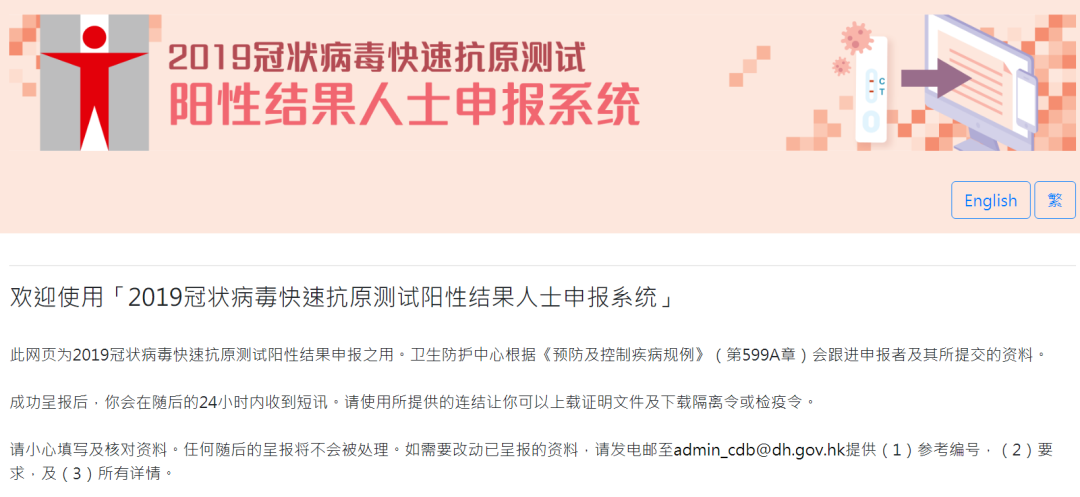 平台网址为https://www.chp.gov.hk/ratp/,当日或前一日快测阳性人士可使用该系统申报;以3月7日为例,3月6日和7日快测阳性人士可申报。