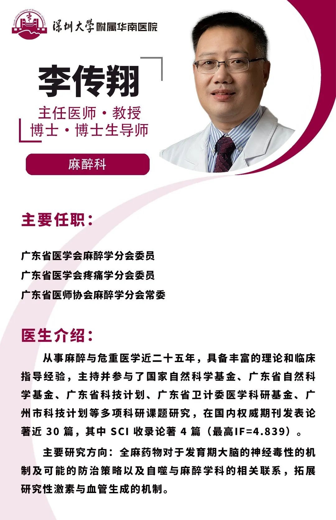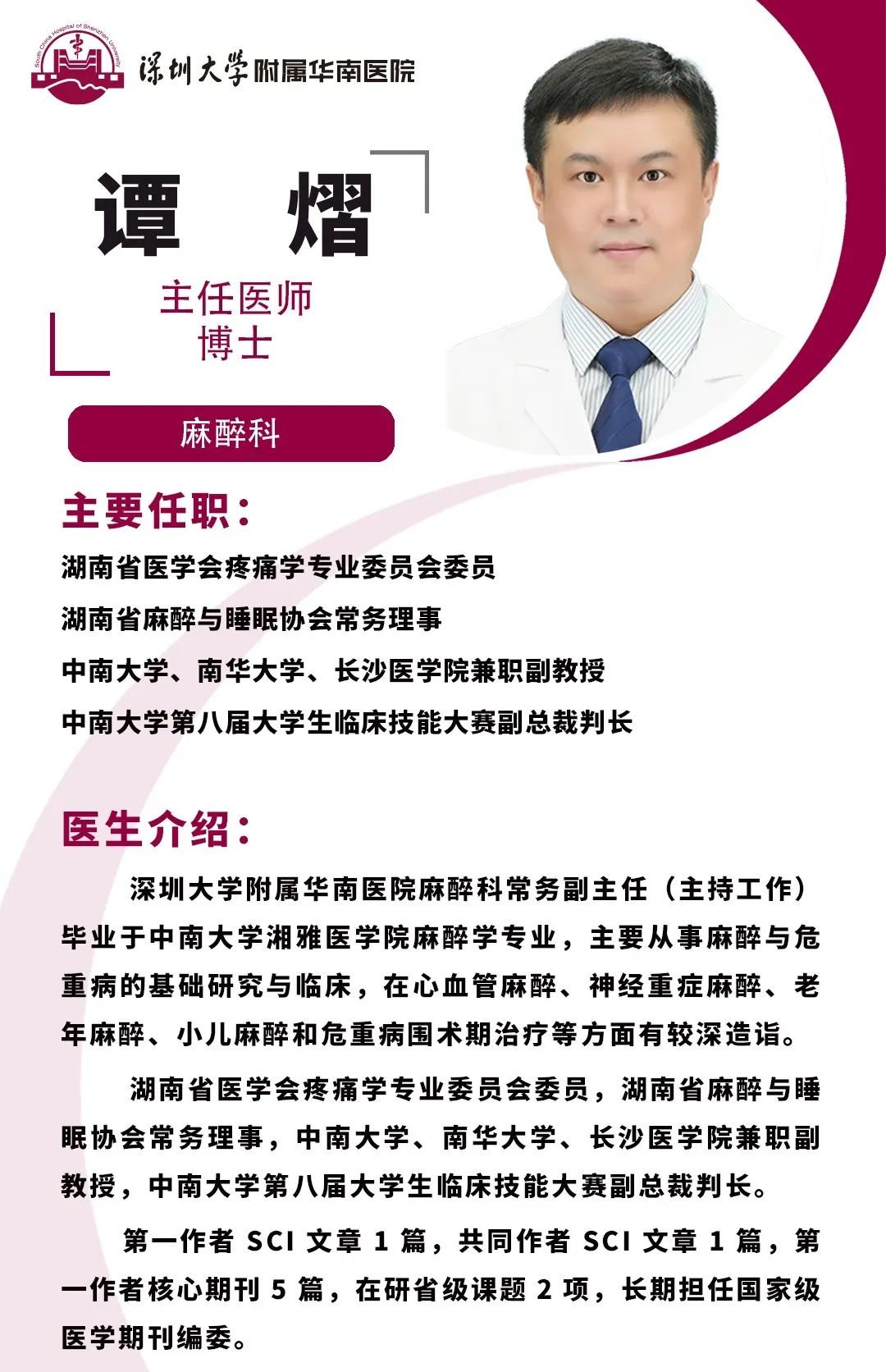 深圳大学附属华南医院麻醉手术中心是集门诊评估、临床手术麻醉、教学与科研为一体的临床二级学科。中心手术室拥有现代化的层流手术间手术室29间,门诊日间手术室8间,DSA手术间3间,急诊手术间2间;并设有麻醉评估门诊、产房、人流室、消化内镜中心等多个区域的诊疗服务。
