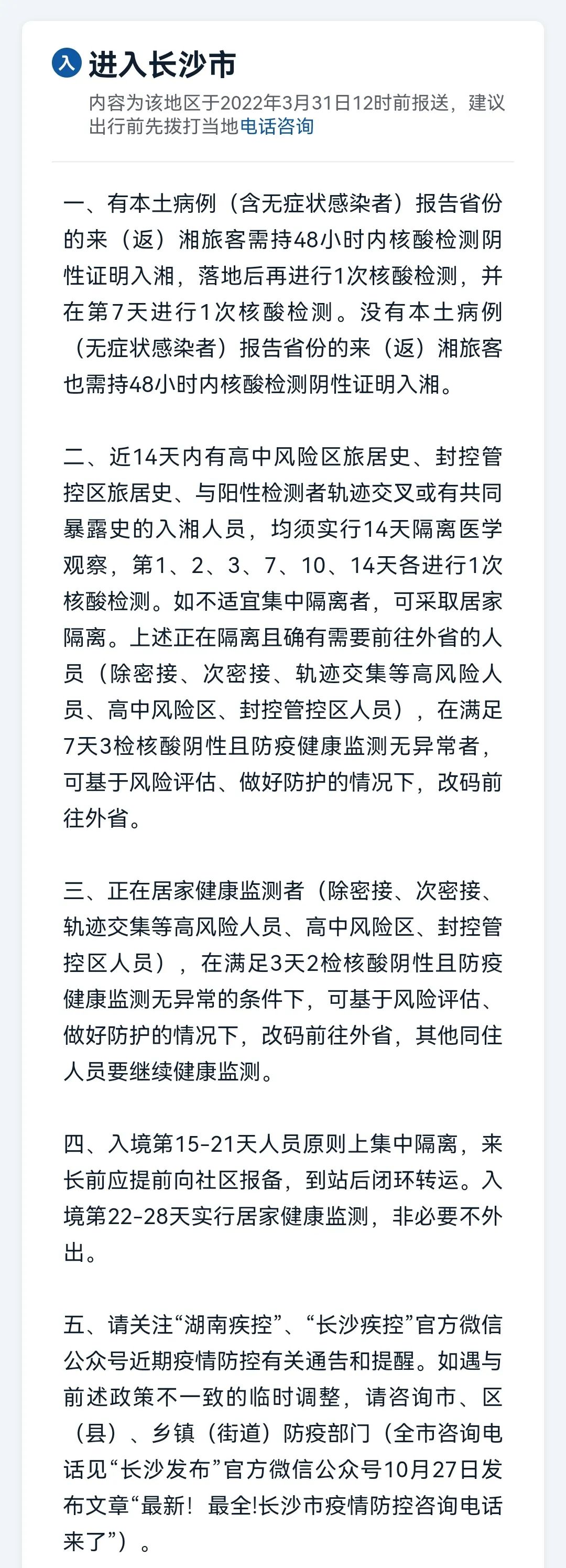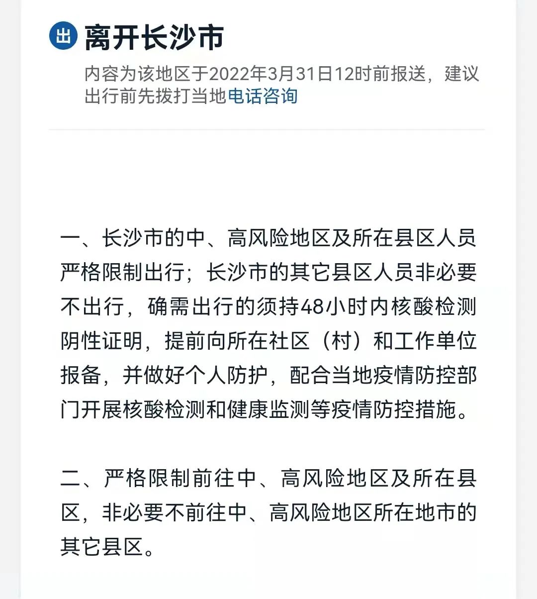 小编分析发现:进出长沙各市州,基本都需要提供48小时核酸阴性证明,并提前2天或3天向当地社区报备。具体以各地防疫要求为准。