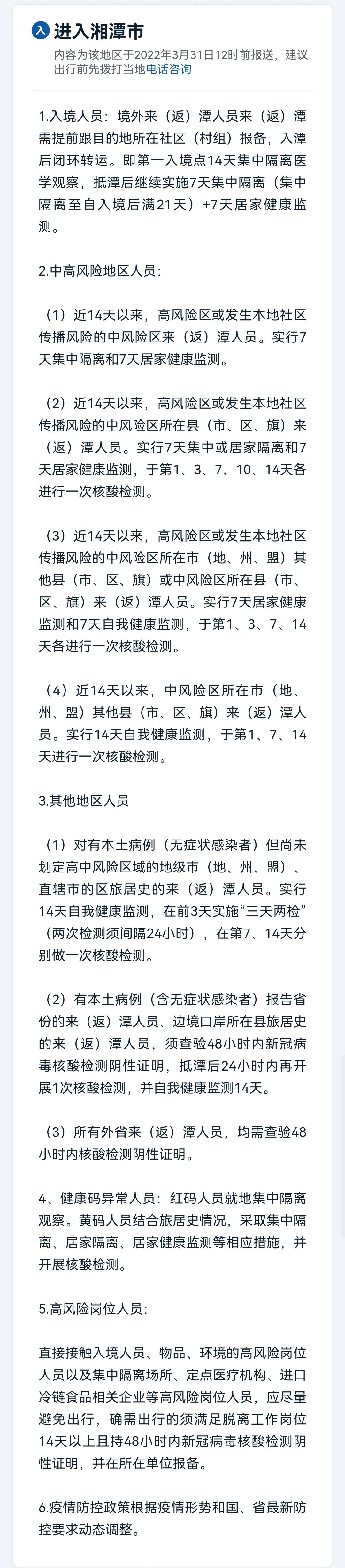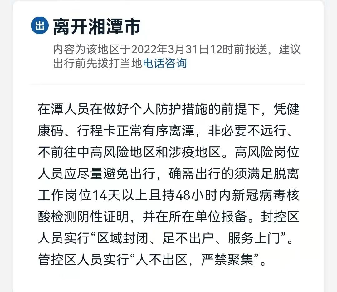 从长沙芙蓉南路去湘潭需24小时核酸证明