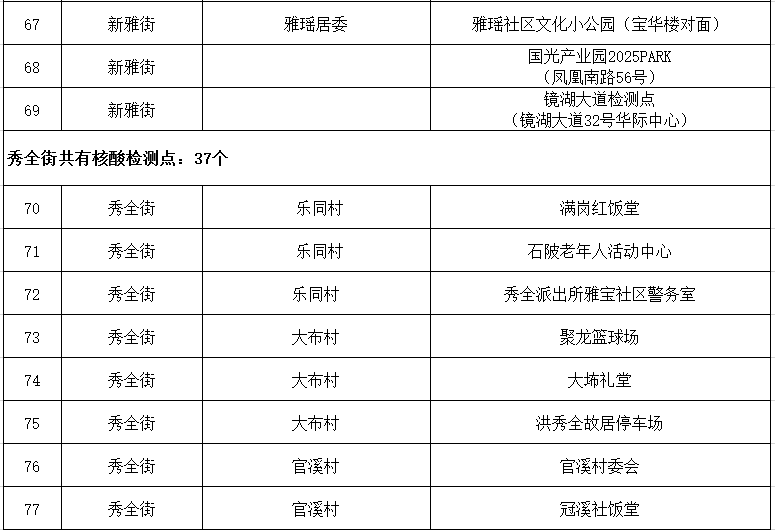 (全员核酸检测点可能会根据实际情况进行调整,以属地镇街和社区、村的现场指引为准)