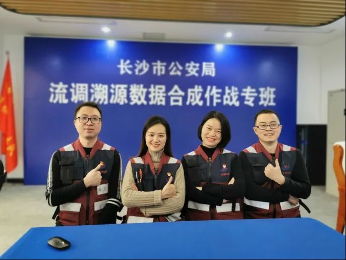 ▲黄文章(左一)和公安流调专班的领导、同事一起坚守