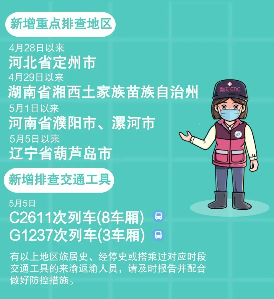 有重点时段和地区旅居史、经停史,搭乘过对应时段交通工具的来渝返渝人员,在做好个人防护的前提下,第一时间向社区(村)、单位、宾馆酒店民宿等报告或通过“社区报告二维码”填报个人信息,按要求配合做好核酸检测、隔离观察、健康监测等防控措施。
