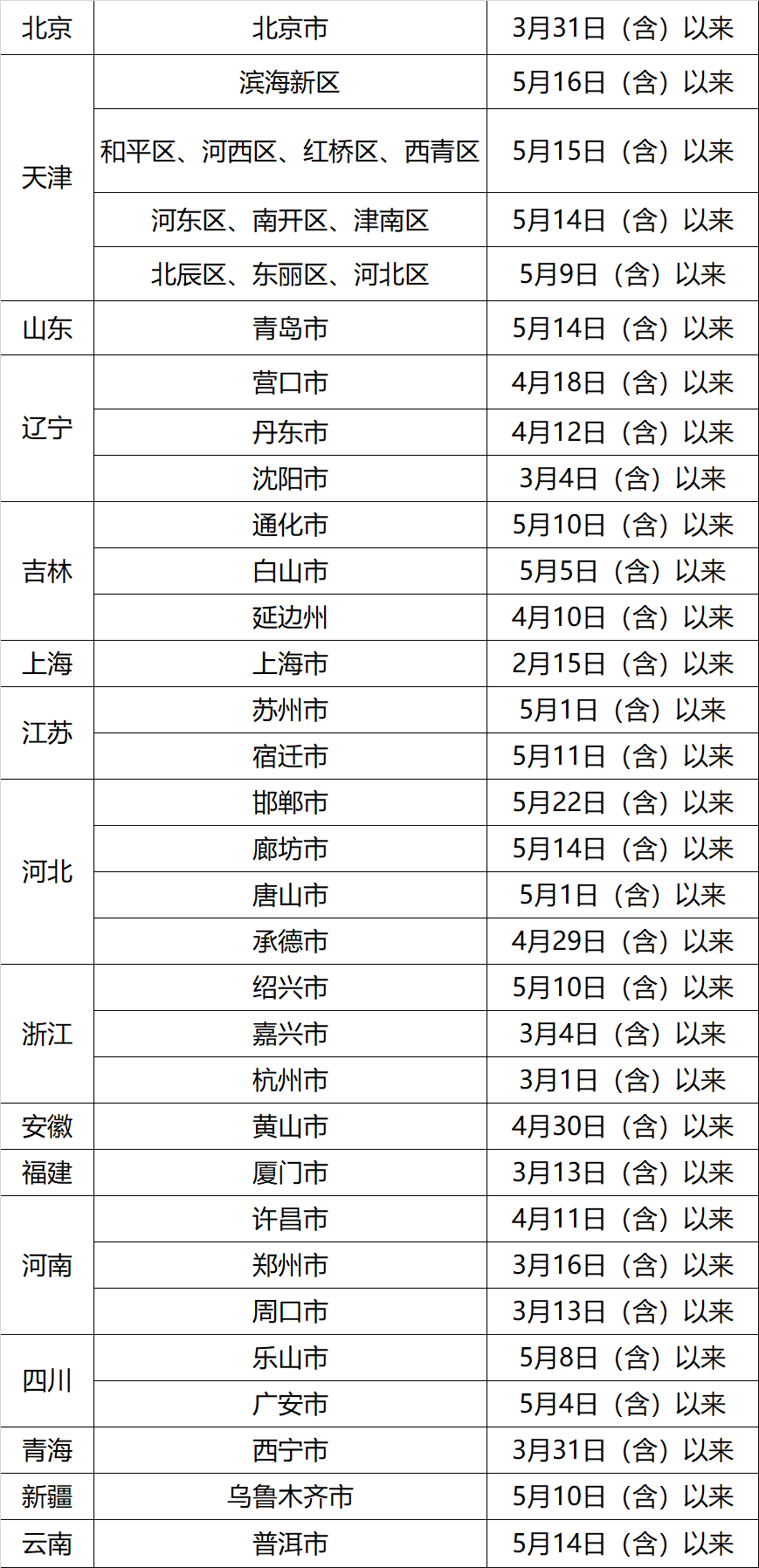 • 北京市(除朝阳区、房山区、海淀区的北太平庄街道、通州区的台湖镇、丰台区)
