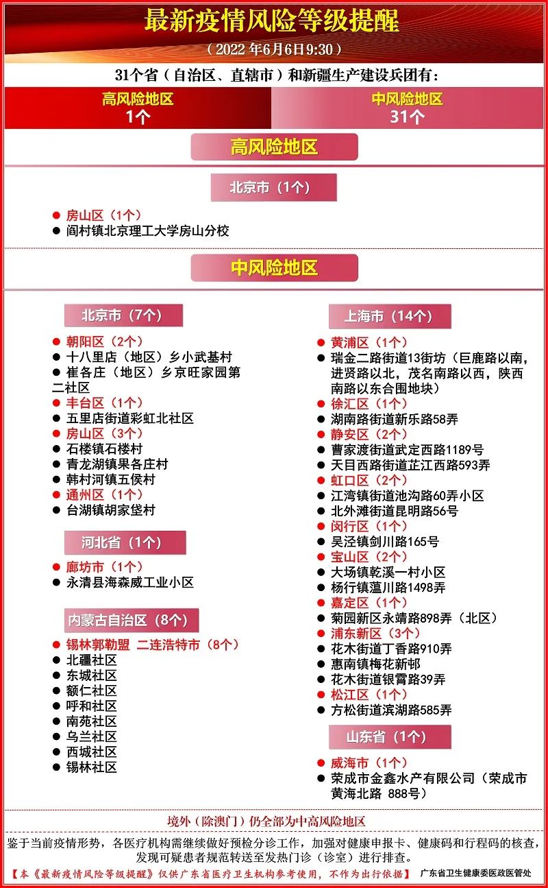 2022年6月5日0时至24时,全市无新增本土确诊病例和本土无症状感染者。新增境外输入确诊病例1例和境外输入无症状感染者6例。新增出院病例4例,尚在院治疗16例。