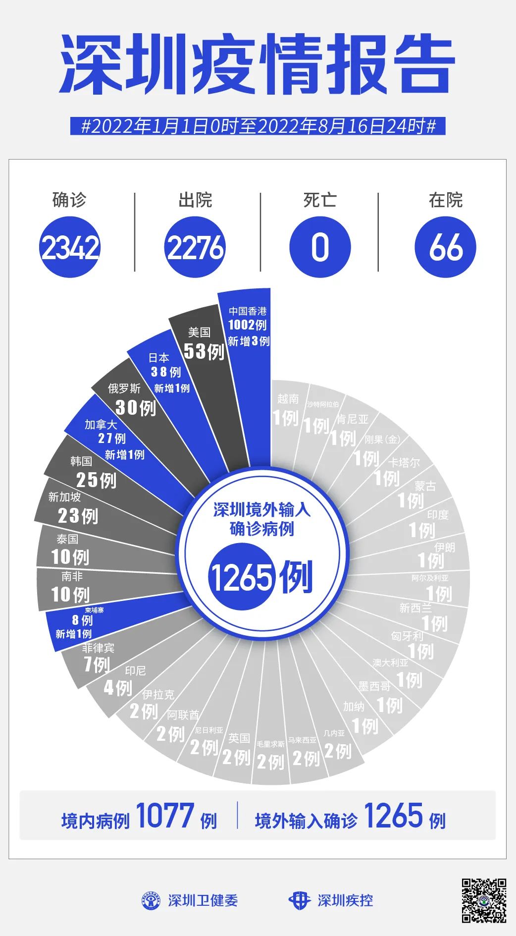 8月16日深圳无本土新增病例,新增境外输入5例确诊病例和5例无症状感染者