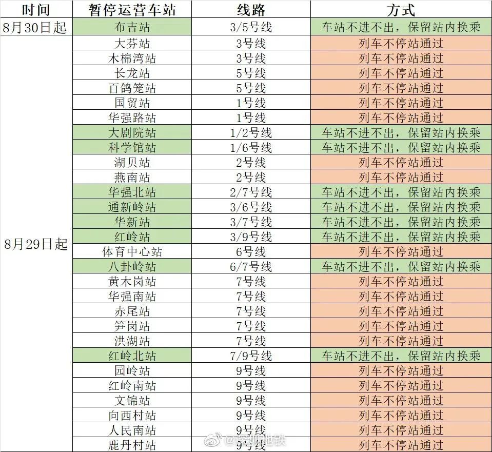 深圳地铁发布运营公告:自2022年8月30日12:00起,深圳地铁3/5号线布吉站暂停运营服务,具体恢复时间待另行通知。深圳地铁停运车站增至29个,所有停运车站关闭出入口,人员不进不出。