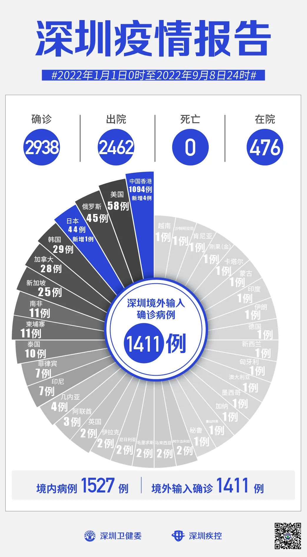 9月8日0-24时,深圳新增54例阳性病例,26例诊断为新冠肺炎确诊病例,28例诊断为新冠病毒无症状感染者。