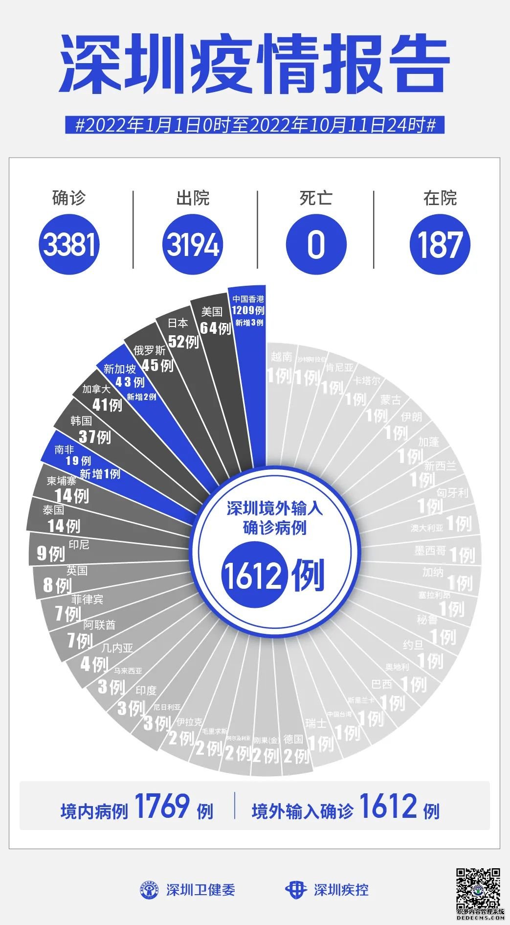 10月11日0-24时,深圳本土新增 23 例 新冠肺炎确诊病例和 6例 新冠病毒无症状感染者。 新增境外输入新冠肺炎确诊病例 6例 和新冠病毒无症状感染者 4例 。 以上病例抵深后被纳入闭环管
