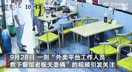 一外卖小哥走进一家餐馆准备取餐时,发现店老板头晕躺在椅子上,老板娘也因恶心趴在桌上,小哥进店没看到餐食,问餐在哪里,俩人也一声不吭。