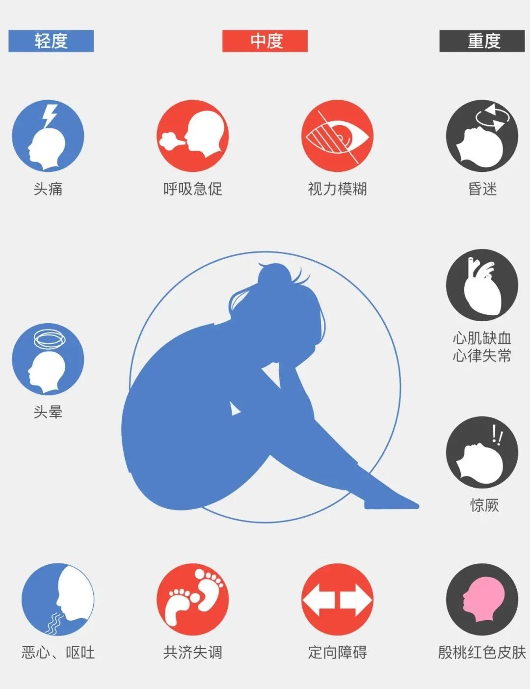 患者出现昏迷,大小便失禁,瞳孔散大,呼吸衰竭,皮肤如樱桃色的潮红、冰凉,甚至死亡。