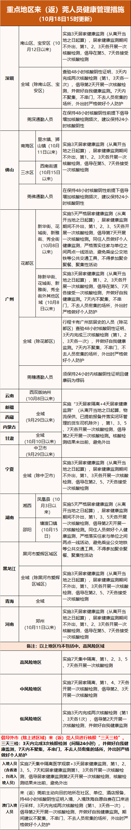 1. 全国重点地区来(返)莞人员健康管理措施
