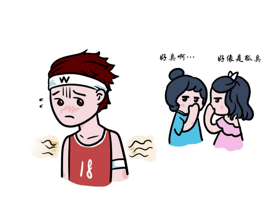 大汗腺分泌物本来是不臭的,可是一遇到皮肤表面葡萄球菌属、微球菌属、棒状杆菌属和丙酸杆菌属等细菌分解,形成挥发性脂肪酸和硫醇等有味道的物质,就会产生化学武器——腋臭。