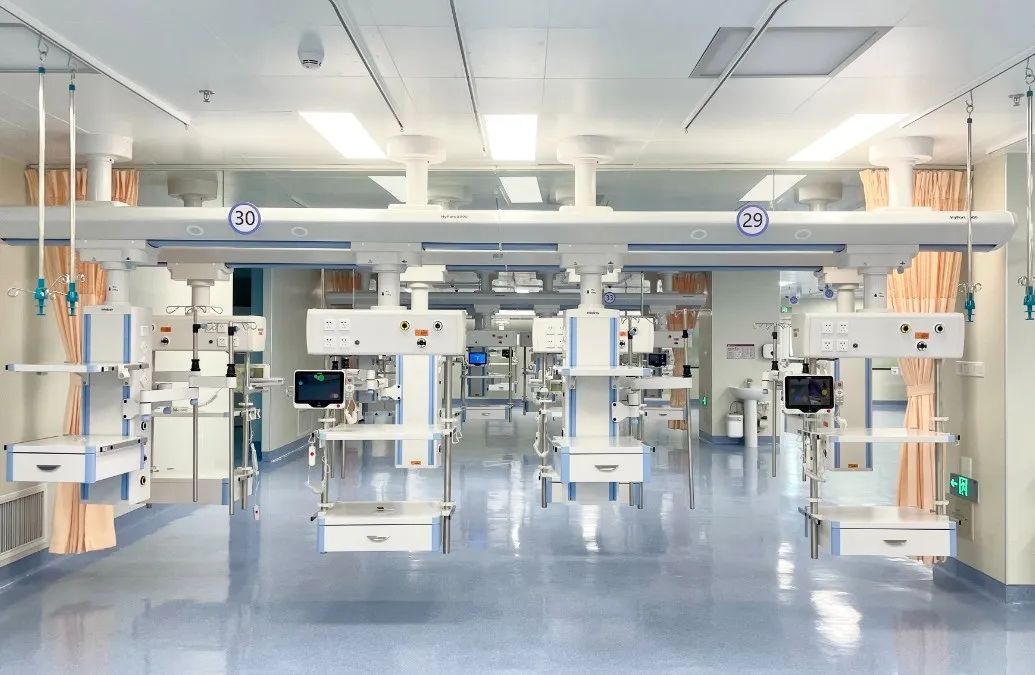 深圳大学华南医院ICU位于门诊医技楼5楼,占地约3006平方米,ICU目前拥有39张高标准现代化配备床位,病区为层流洁净恒温病房,布局合理,其中普通开放式病床33张,院感隔离病床4张,以及两间负压隔离病房。宽敞明亮的病房环境,各类先进的仪器设备,走进即让人“安全感”满满。可实现全院重症患者早期预警、筛查与快速处理,最大限度保障患者的安全和提高救治成功率。